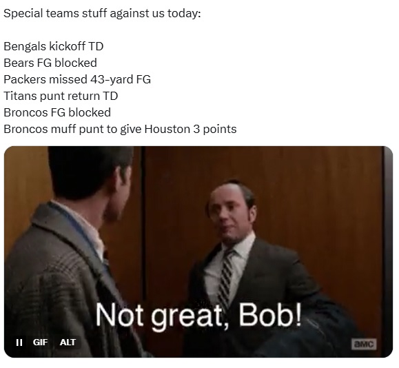 Browns, 3 units (loss): I was extremely tilted about this game. We lost a bunch of games last week because of special teams nonsense: