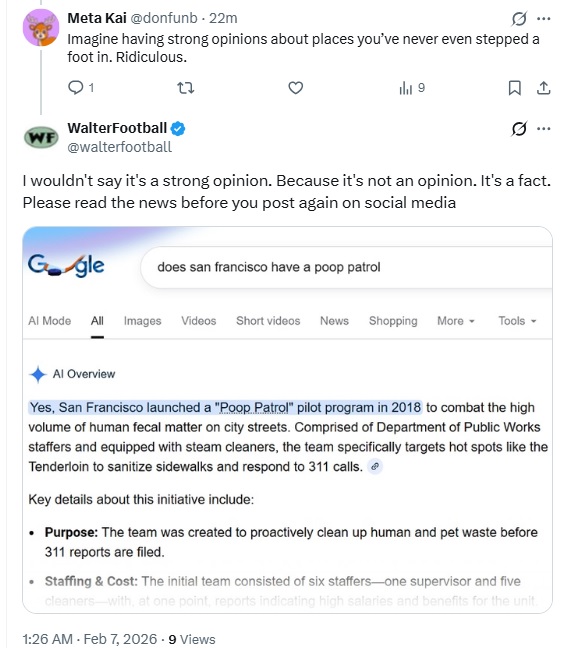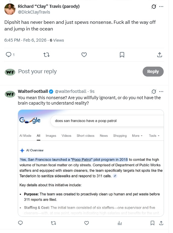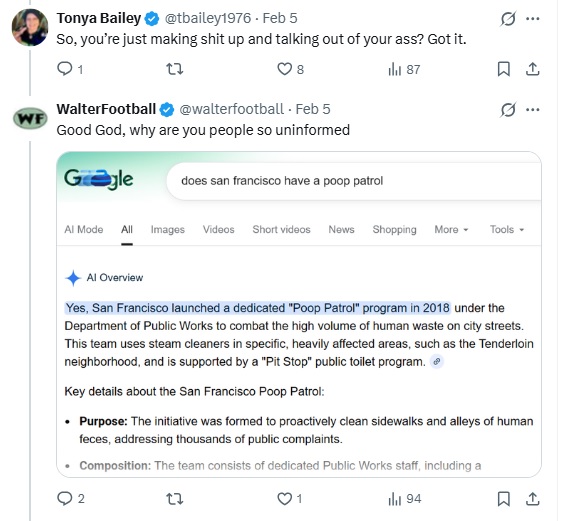 So, just imagine that you’re me, and you’ve heard about San Francisco’s poop problem eight years ago. Then, you see an NFL reporter express his love for a city filled to the brim in fecal matter and then chide those who don’t agree with him. If you’re in my shoes, how would you react? Well, I can answer that for you: