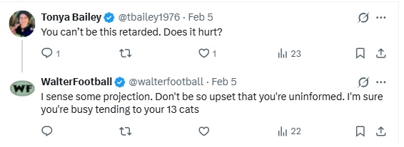 Retarded for what, proving her wrong via Google search? Is it possible that Tonya is so dumb that she has never even heard of Google? You can’t count anything out with these people. Oh, and she never responded to me, so I’m assuming my guess on her cat ownership was quite accurate.
