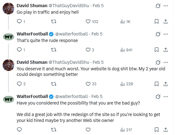 Oh, and I was being completely truthful with the first part of my response. I view my readers as the sharpest football fans out there because no one has been more accurate in our draft predictions than me and Charlie (proof in the link for those who are somehow still doubters.) We’ve also been great with our NFL futures, releasing the Eagles at 40/1 and 18/1 the two times they won the Super Bowl, as two of many examples. There’s a lot of horrible content out there, and the stupid football fans aren’t able to discern that from great content. The fact that this guy is ashamed proves that he is one of those individuals, which is why I’m not happy that he used to be a reader of the site. He just makes us look bad.