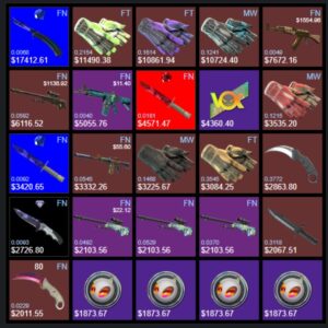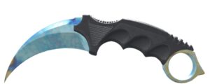 Knives usually account for a large share of value in premium inventories. At the extreme end of the market, the Karambit Case Hardened Blue Gem pattern #387 is widely associated with valuations above $1.5 million, though that figure is typically discussed as a private valuation or offer rather than a routine public-market sale. More attainable high-end knives such as Karambit Fade, Butterfly Knife Doppler, and M9 Bayonet Marble Fade can still represent major inventory value depending on float, phase, and pattern.
