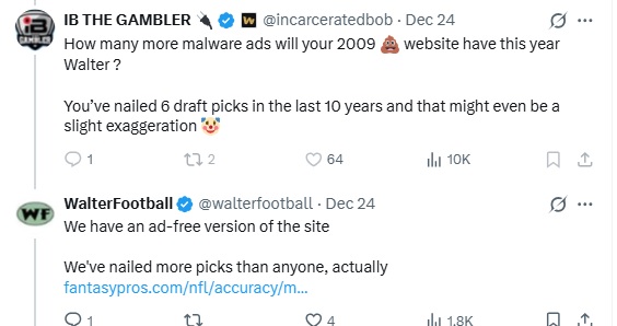 If you’d like to support this site outside of buying my books or referring people to it, you can check out the WalterFootball Merch Store as well! I can design shirts rather easily, so if you have any new ideas, let me know in the comments below. In addition to WalterFootball t-shirts, you can also buy AMC and GameStop stock gear as well!