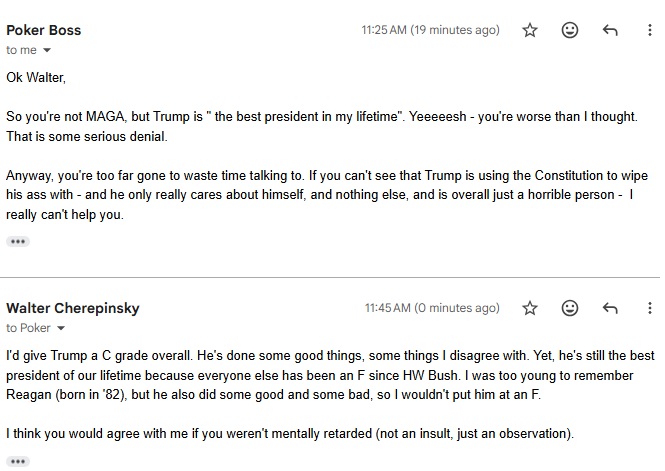 Call me crazy, but I don’t think Poker Boss has the IQ to agree with me.