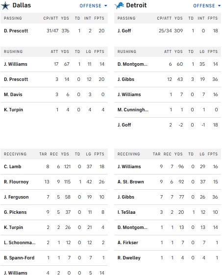 The incompetence of the Cowboys’ defense can be seen on the scoreboard. The Lions did whatever they pleased offensively. It helped that Amon-Ra St. Brown was a surprise active, but Jared Goff torched Dallas’ secondary mercilessly. This was more apparent than ever when the Cowboys trimmed the margin to 37-30 at the very end. The Cowboys needed a stop without three minutes remaining, but on second-and-long, Goff ripped a long connection to St. Brown to effectively ice the game.