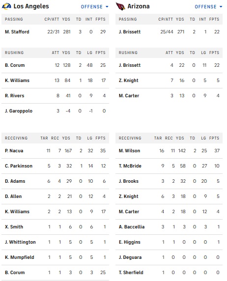Meanwhile, the Rams did whatever they pleased offensively. They moved the chains with ease an seldom had any third downs before the game was out of hand. Whether it was Matthew Stafford’s passes to Puka Nacua, or runs by Blake Corum or Kyren Williams, the Rams were tremendous no matter in every regard, ultimately holding a 45-10 lead before resting the starters.