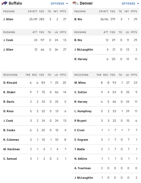 Cook wasn’t the only Buffalo player who put the ball on the ground. Josh Allen did so right before halftime, recklessly coughing up the ball when scoring was impossible. This allowed Denver to kick a free field goal, and then the same thing happened right after intermission when Allen lost another fumble. The Broncos were gifted six points on these turnovers.