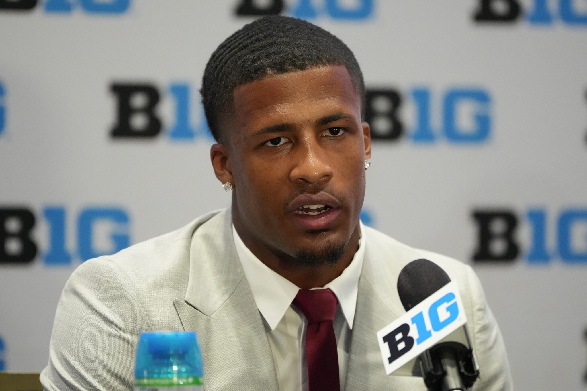 Ohio State Buckeyes wide receiver Carnell Tate (17) catches a touchdown pass against Wisconsin Badgers safety Matt Jung (29) in the first half at Camp Randall Stadium on Saturday, Oct. 18, 2025 in Madison, Wisconsin.